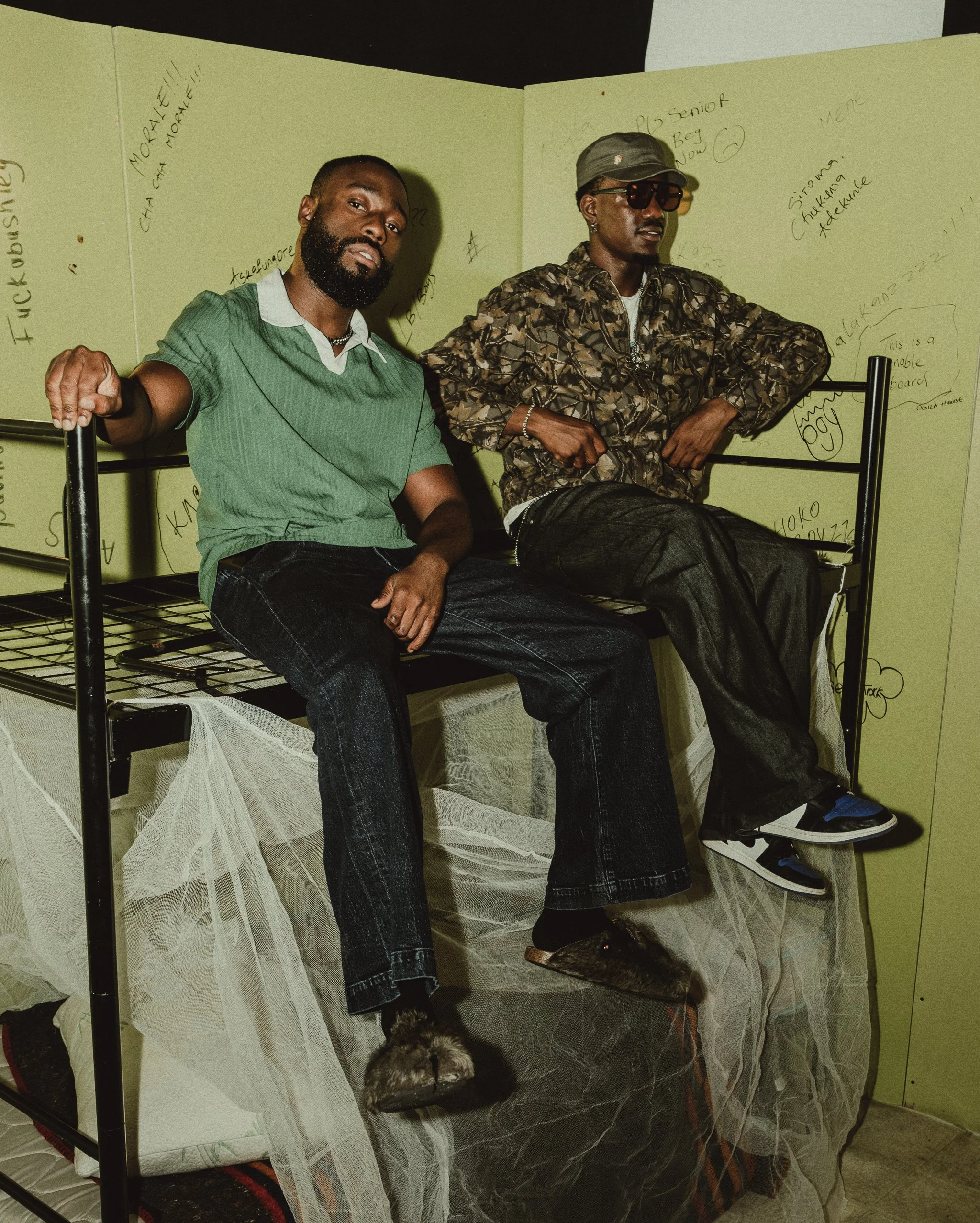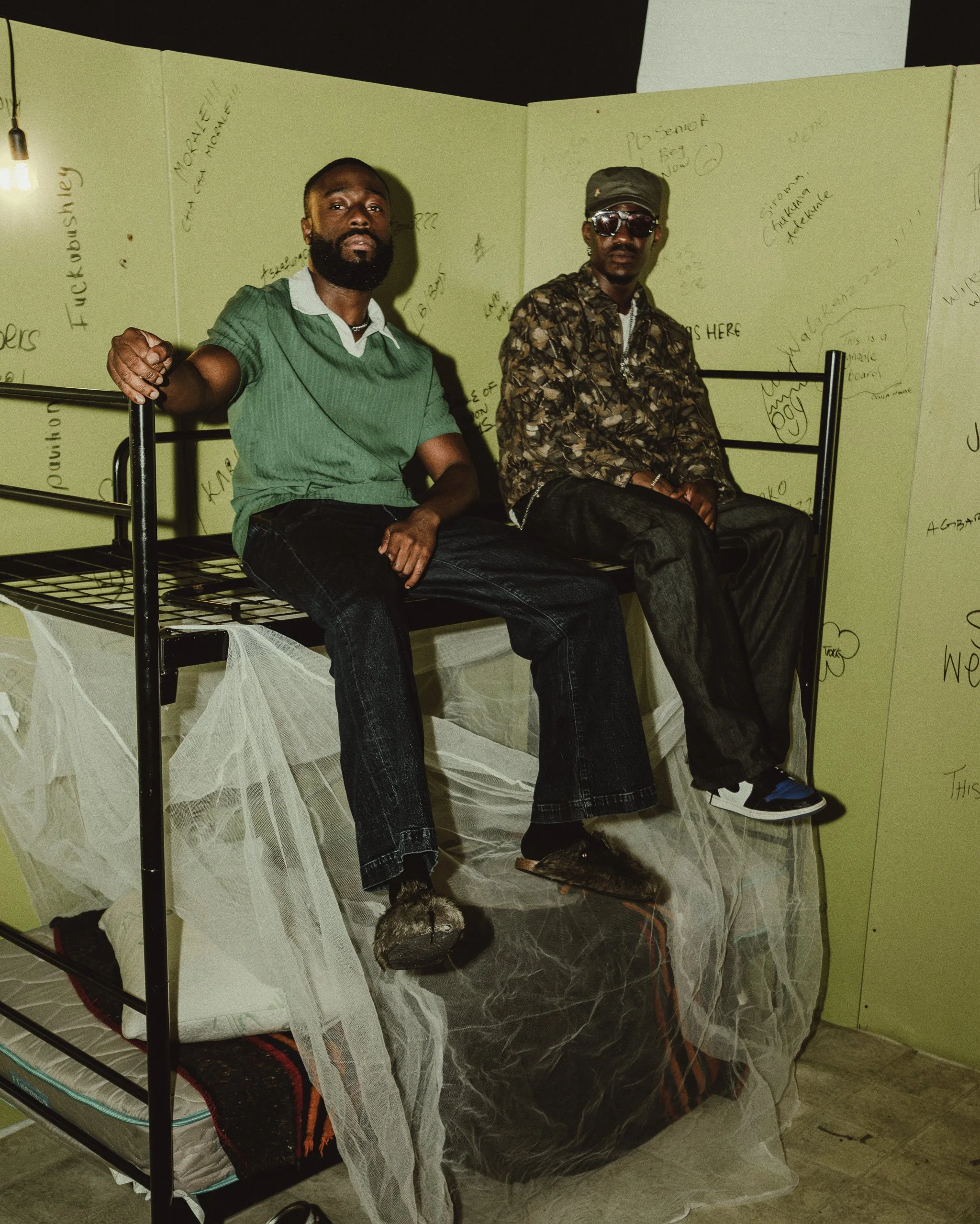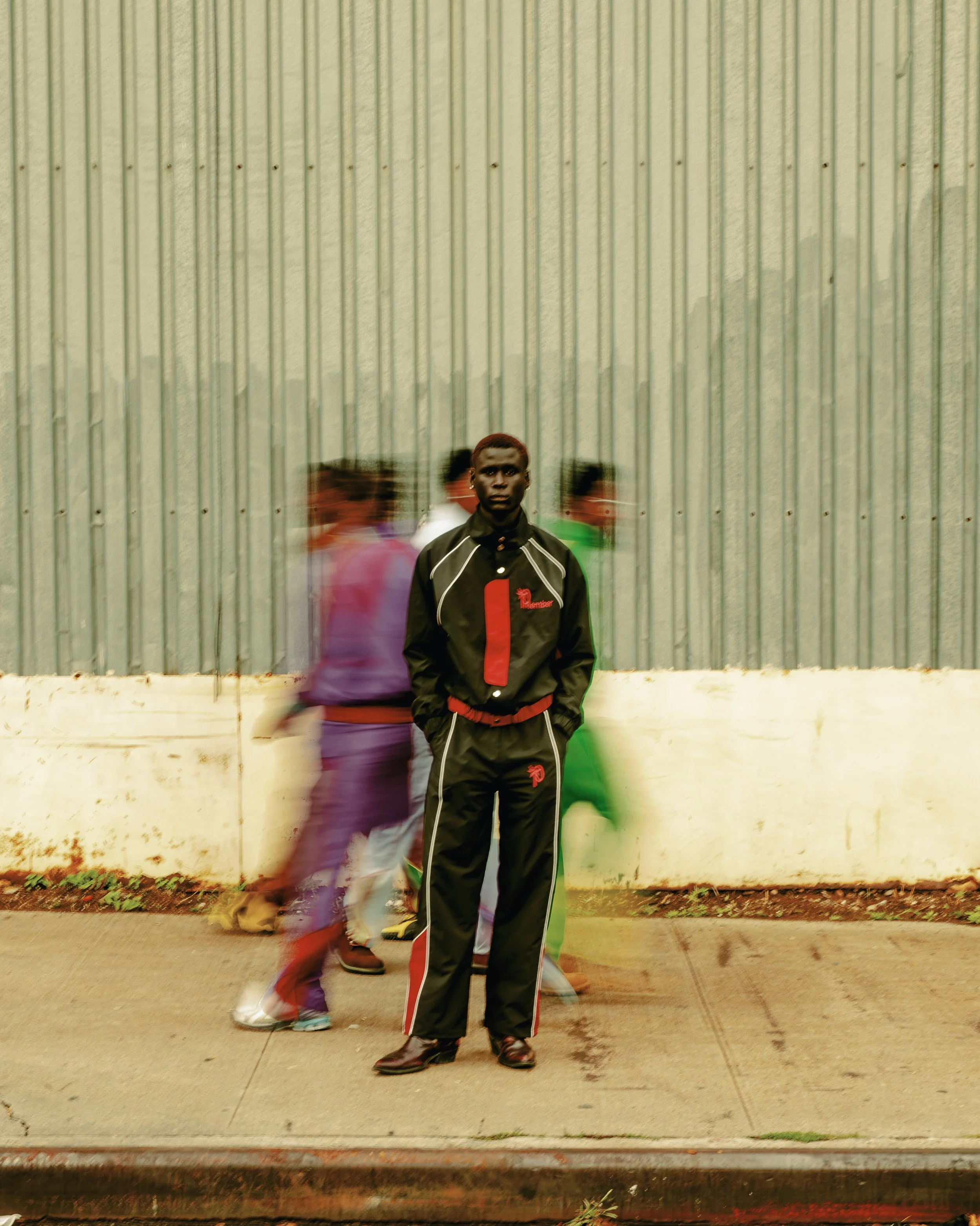 A key work is the “Ibadan Raised, NYC Made” tracksuit, designed with Akama and Orisha Temi. “The green and yellow colourway is a reference to my school AFCS (Air Force Comprehensive School) school team colourway that earned the tracksuit its name, AFCS 18th Legacy Set.” A hidden “Flying Colours” wing structure is embedded in the sleeves, and the wings unfurl when the wearer spreads their arms, a subtle symbol of ambition and rise. Elsewhere, an “O Gbona” vignette, rooted in a bread seller’s morning call, folds childhood memories into contemporary set pieces and styling. A short film connects these moments and brings the exhibition’s sonic and emotional palette to life.