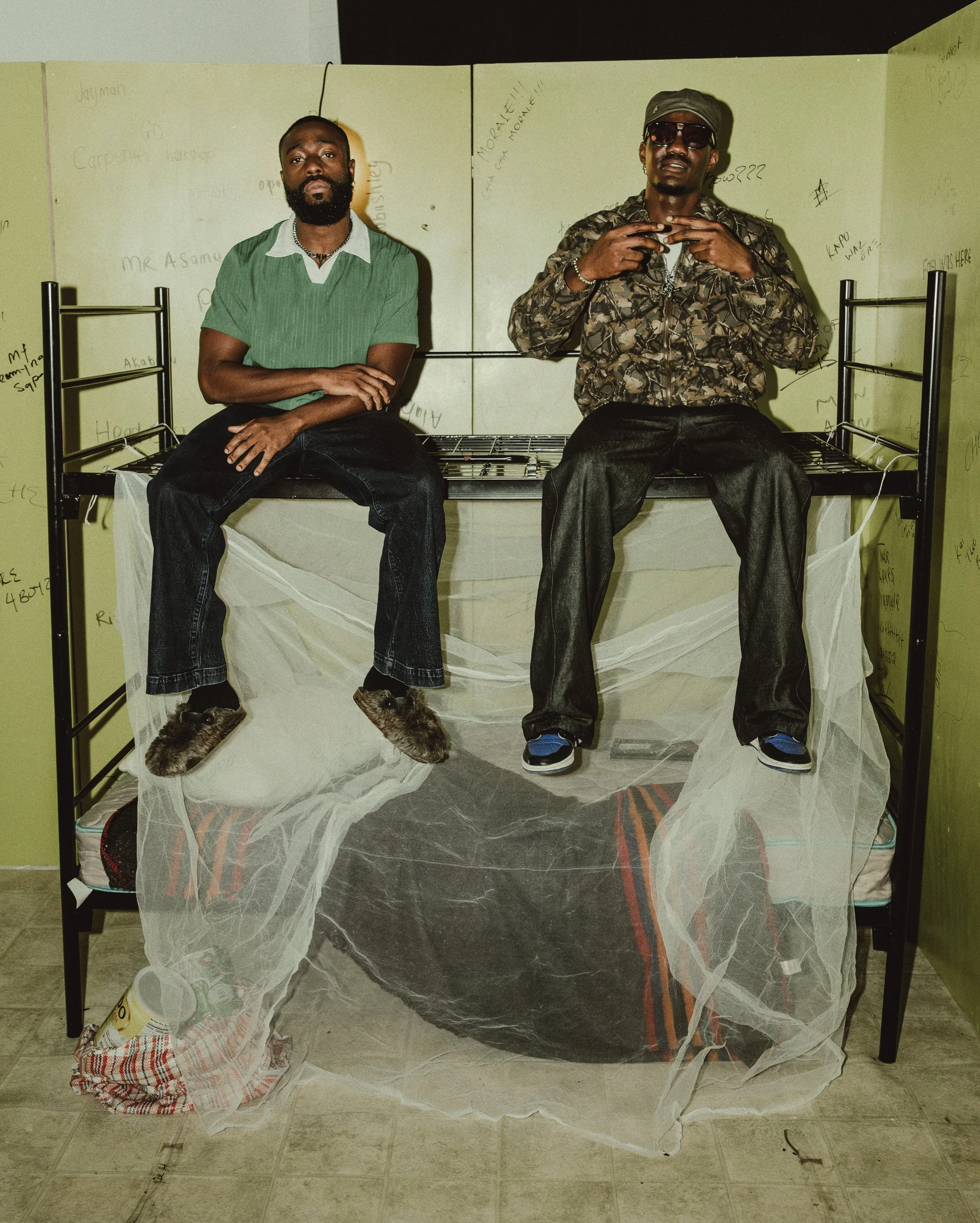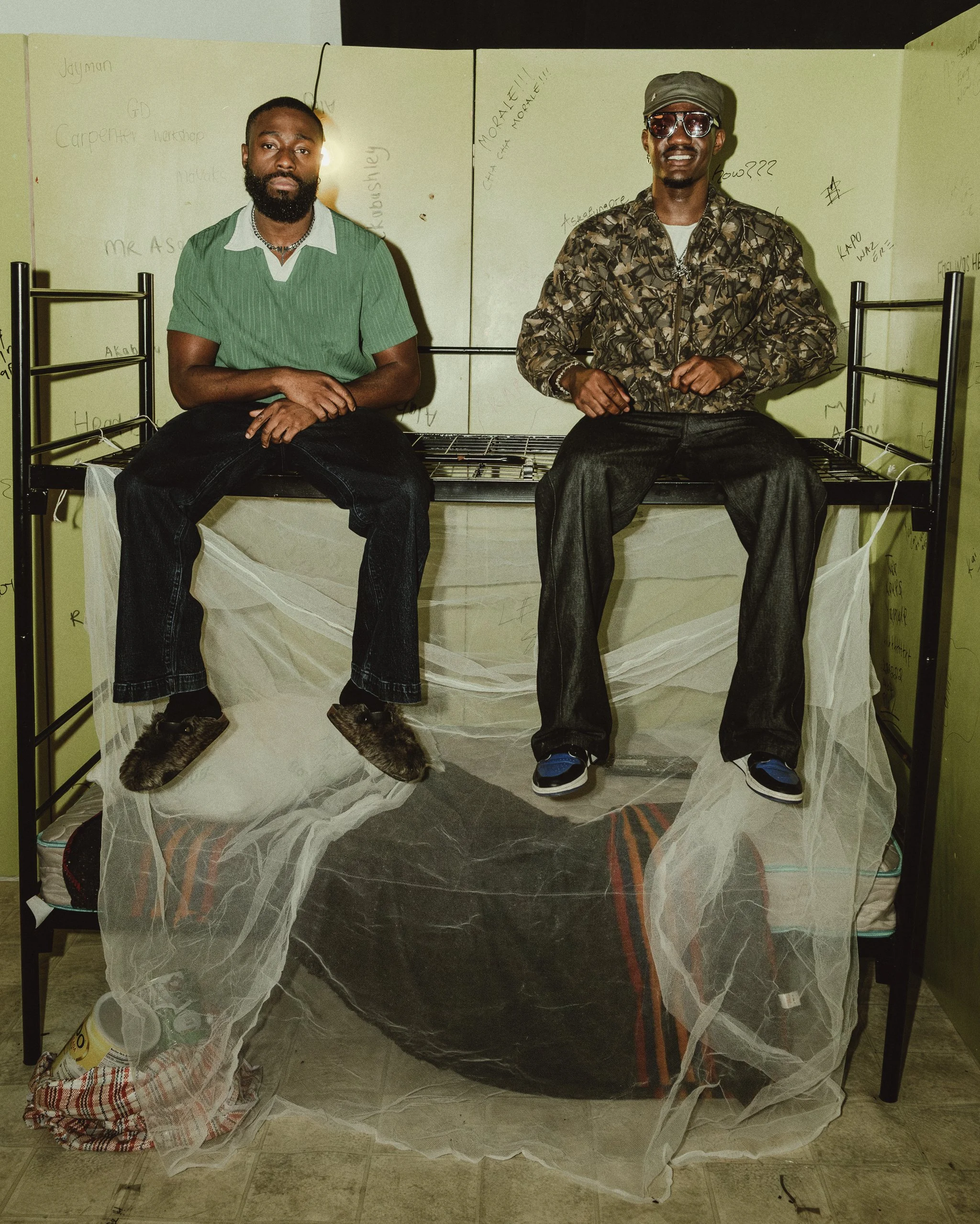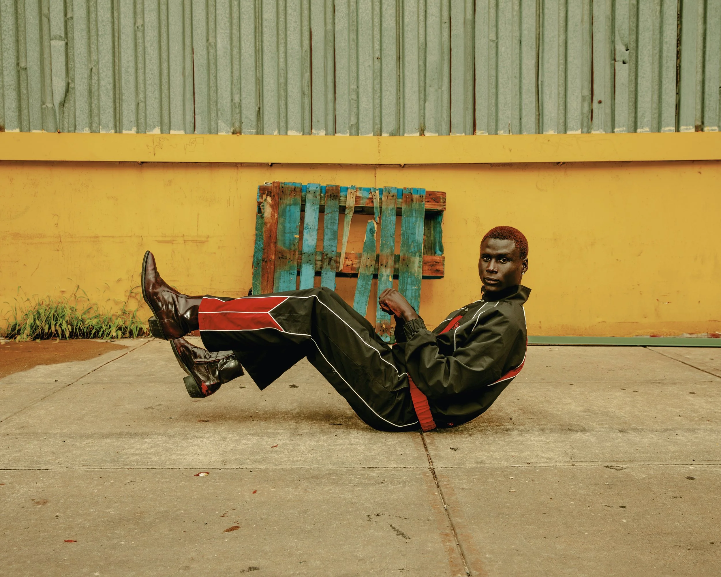 A key work is the “Ibadan Raised, NYC Made” tracksuit, designed with Akama and Orisha Temi. “The green and yellow colourway is a reference to my school AFCS (Air Force Comprehensive School) school team colourway that earned the tracksuit its name, AFCS 18th Legacy Set.” A hidden “Flying Colours” wing structure is embedded in the sleeves, and the wings unfurl when the wearer spreads their arms, a subtle symbol of ambition and rise. Elsewhere, an “O Gbona” vignette, rooted in a bread seller’s morning call, folds childhood memories into contemporary set pieces and styling. A short film connects these moments and brings the exhibition’s sonic and emotional palette to life.