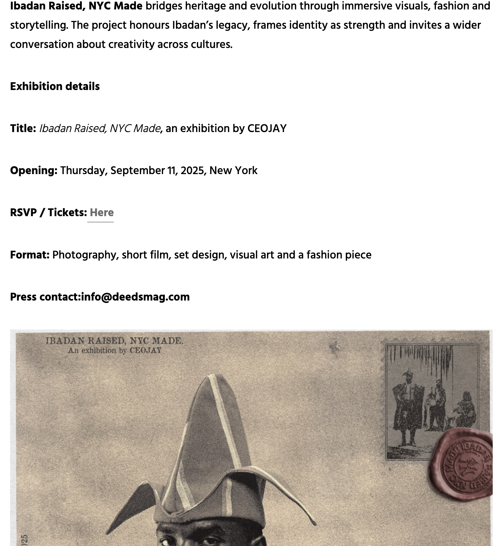 This exhibition fuses fashion, photography, film, and installation art to create an immersive narrative that connects past and present, tradition and modernity, Africa and the diaspora.